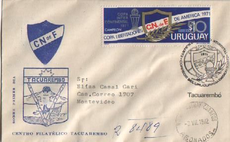 Michel 1242 en Sobre Primer Día circulado con Matasello Tacuarembó y Recepción Montevideo - 30/6/72