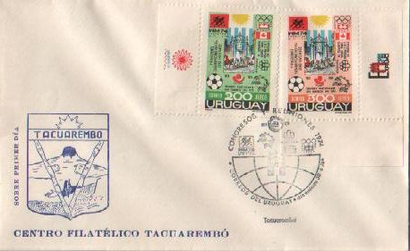 Michel 1313 - 1314 on First Day Cover. Cancellation Congresos y Reuniones 1974 - Tacuarembo - 30-8-74.